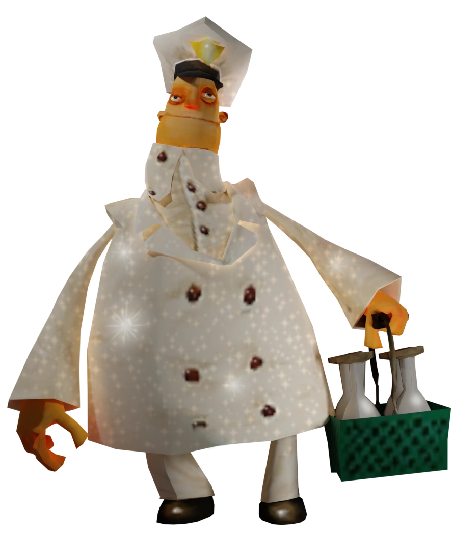 . Somebody—perhaps him—came up with the phrase 'I am the milkman, my milk is delicious', and it may or may not have been during a Double Fine team meal. The Milkman has a very similar physical appearance to Boyd, albeit with a few slight differences